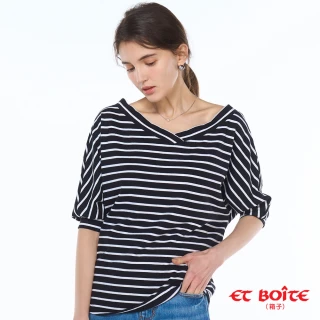 【BLUE WAY】女款 V領條紋七分袖 上衣-ET BOITE箱子