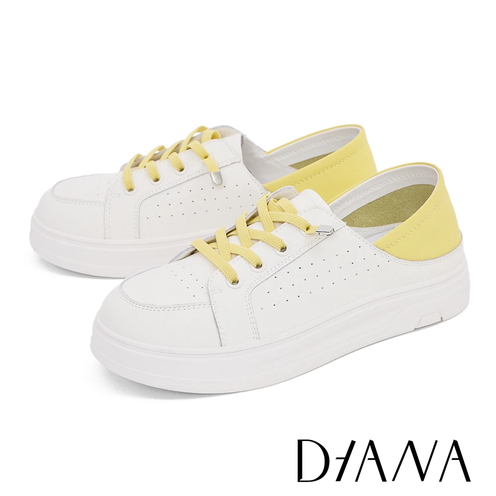 DIANA 撞色百搭免綁帶厚底休閒鞋(黃色)
