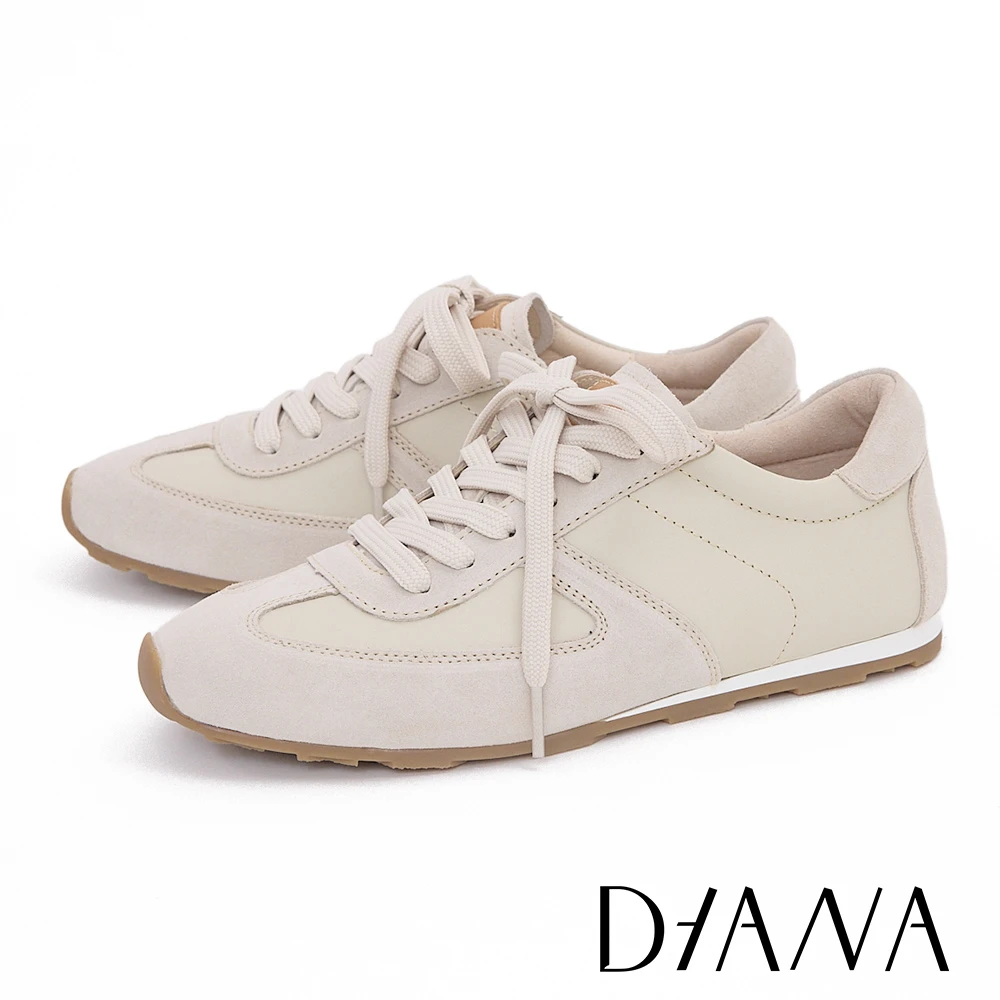 DIANA 舒適異材質拼接綁帶平底德訓鞋(米色)