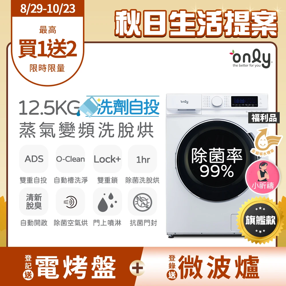 only 熱賣百台!限量升級 小祈禱洗劑自投洗脫烘OF13-M62UD 白色福利品(省水12.5公斤變頻滾筒洗衣機)