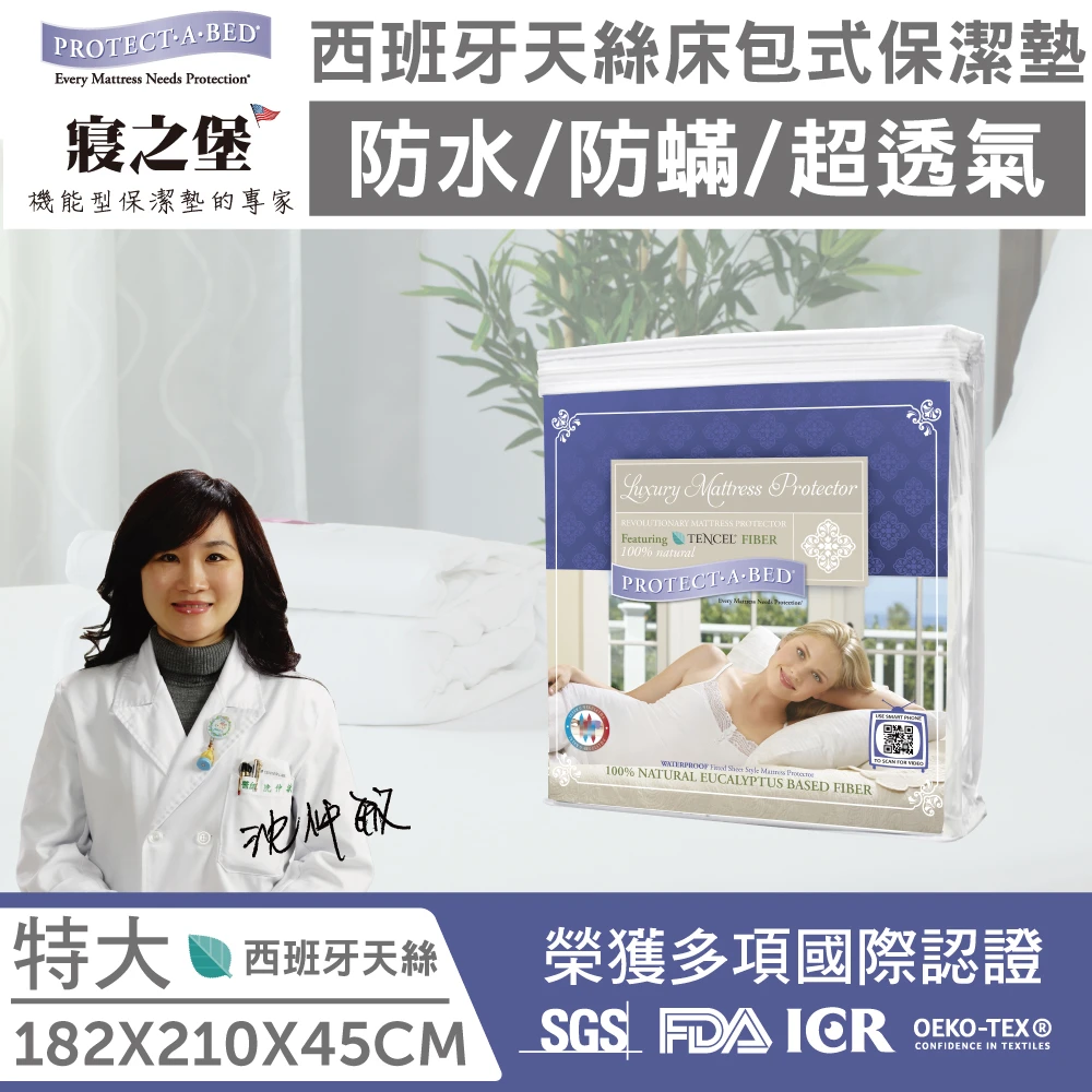 美國寢之堡 西班牙天絲床包式防水保潔墊(雙人特大6x7)