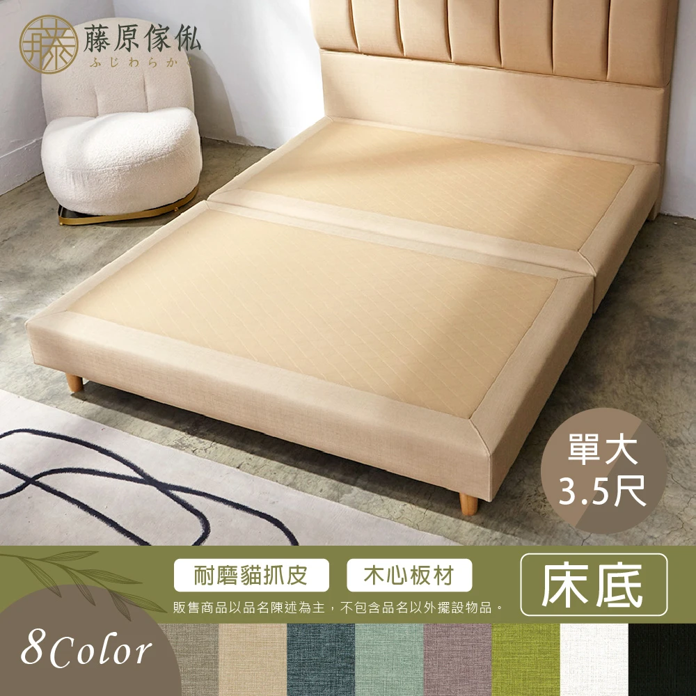 藤原傢俬 伊莉莎白貓抓皮實木腳加高床架/床底單人加大3.5尺(不含床頭)