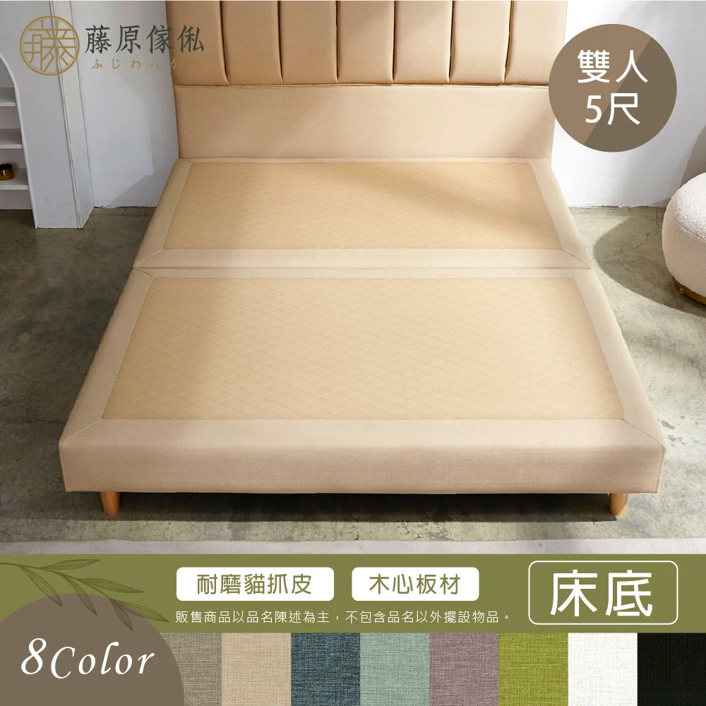 藤原傢俬 伊莉莎白貓抓皮實木腳加高床架/床底雙人5尺(不含床頭)