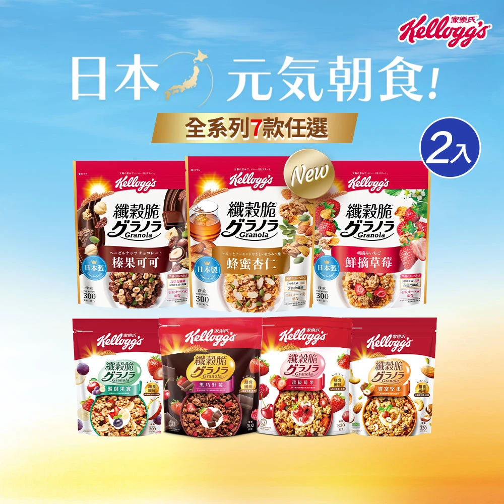 家樂氏Kelloggs 纖穀脆 任選x2包(蜂蜜杏仁/榛果可可/鮮摘草莓/黑巧/超莓/豐富堅果/嚴選果實/燕麥)