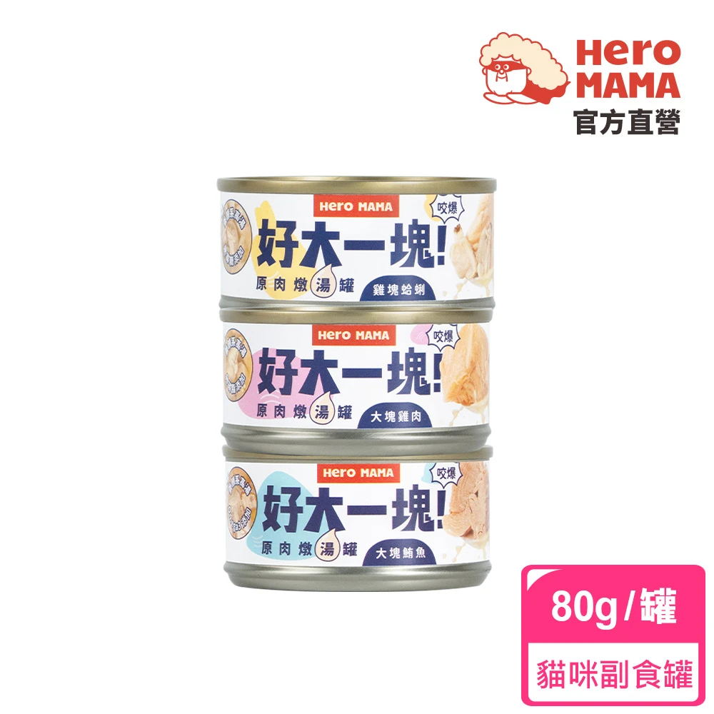 HeroMama 好大一塊!原肉燉貓湯罐80g(犬貓副食罐/貓副食罐/狗副食罐/貓罐頭/狗罐頭)