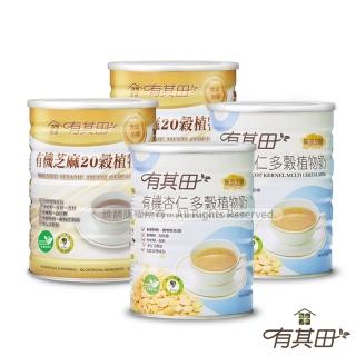 有其田 有機20穀植物奶-芝麻無糖x2罐+杏仁無糖x2罐(芝麻粉/穀粉/即沖即食/杏仁粉)