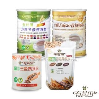 有其田 有機藜麥早餐麥片組-原味x1+芝麻x1+三色藜麥粉x1+穀麥片x1(芝麻粉/紅藜麥/穀粉/穀物)