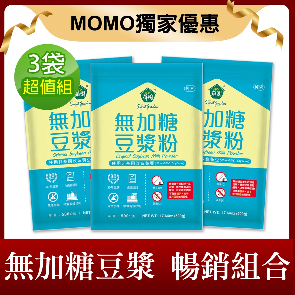 薌園 100%無加糖豆漿粉500g(x3袋)