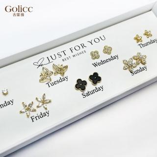 Golicc 耳環 一周耳釘 倒數日期 7日 心情套裝組(雙十 萬聖節 生日 飾品 耳釘 耳飾 耳墜 禮物)