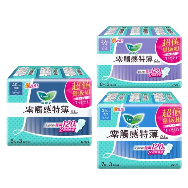 Laurier 蕾妮亞 零觸感特薄衛生棉 夜用型衛生棉 超值量販3包/組(30cm/35cm/40cm)