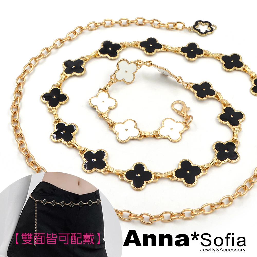AnnaSofia 腰鍊腰帶腰封-雙面戴雙色四葉草 現貨(金底系)