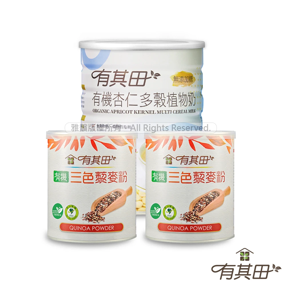 有其田 有機三色藜麥粉X2罐+植物奶罐裝杏仁X1罐(紅藜麥/藜麥/三彩藜麥/杏仁粉)