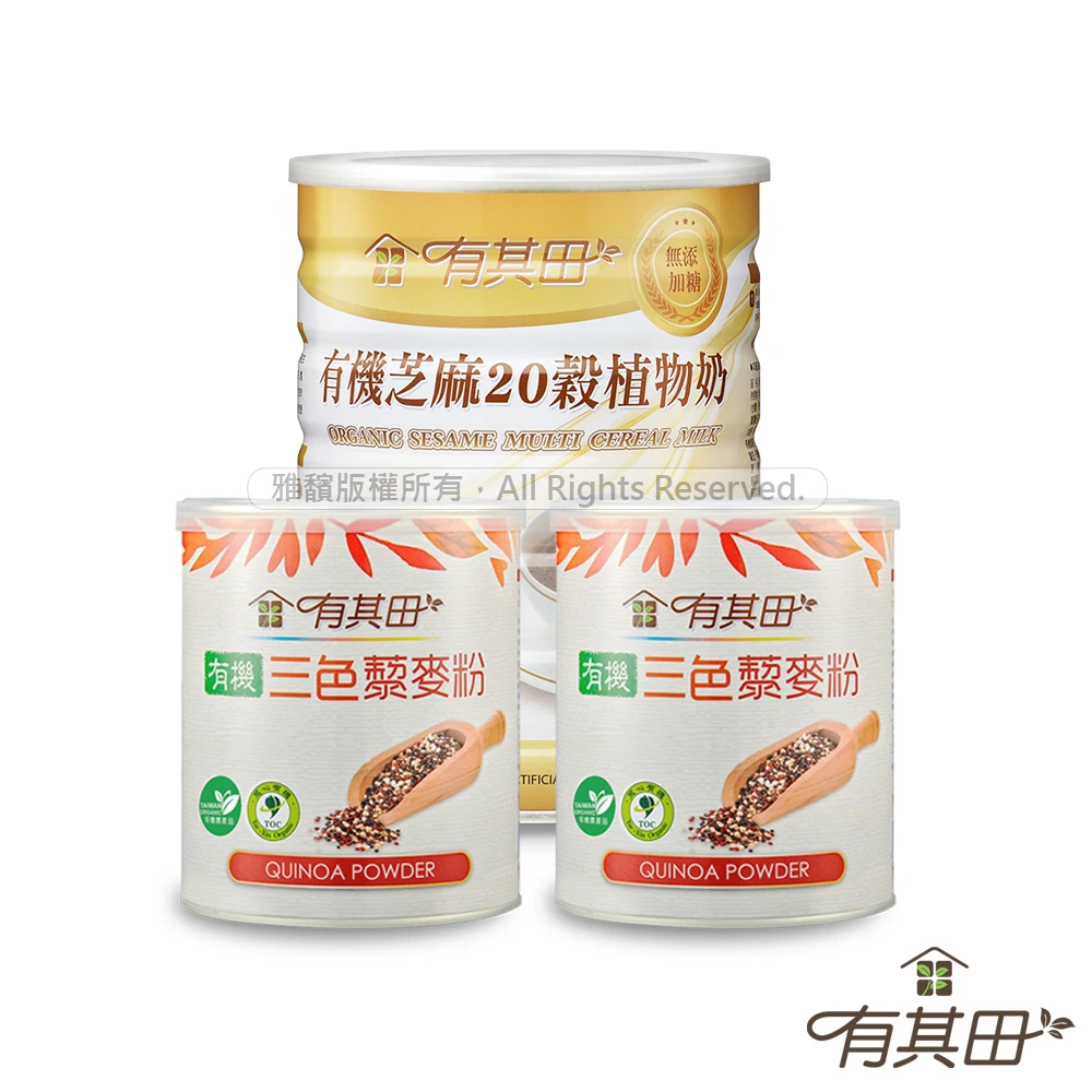 有其田 有機三色藜麥粉X2罐+植物奶罐裝芝麻X1罐(芝麻粉/三彩藜麥/紅藜/黑芝麻)