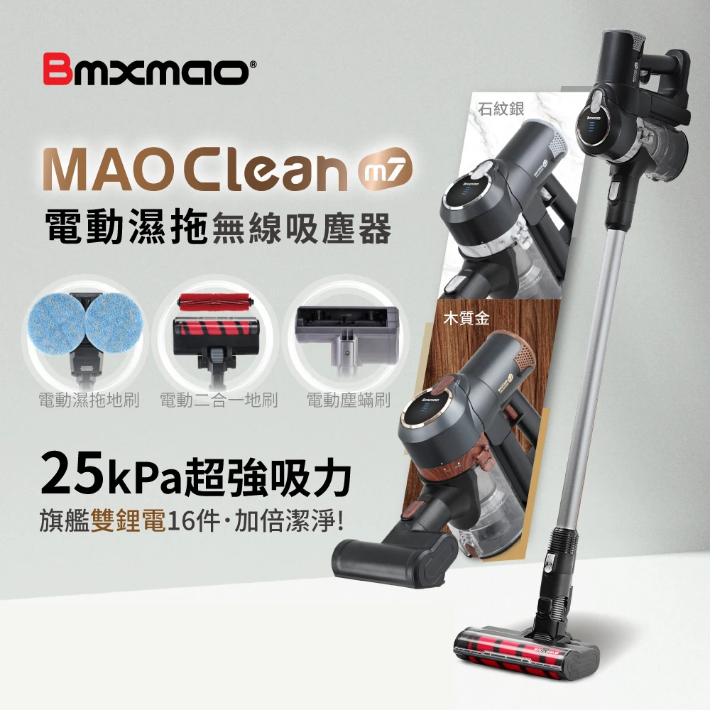 Bmxmao MAO Clean M7 旗艦25kPa電動濕拖無線吸塵器-豪華16件(除蟎/雙電池-RV-2005)
