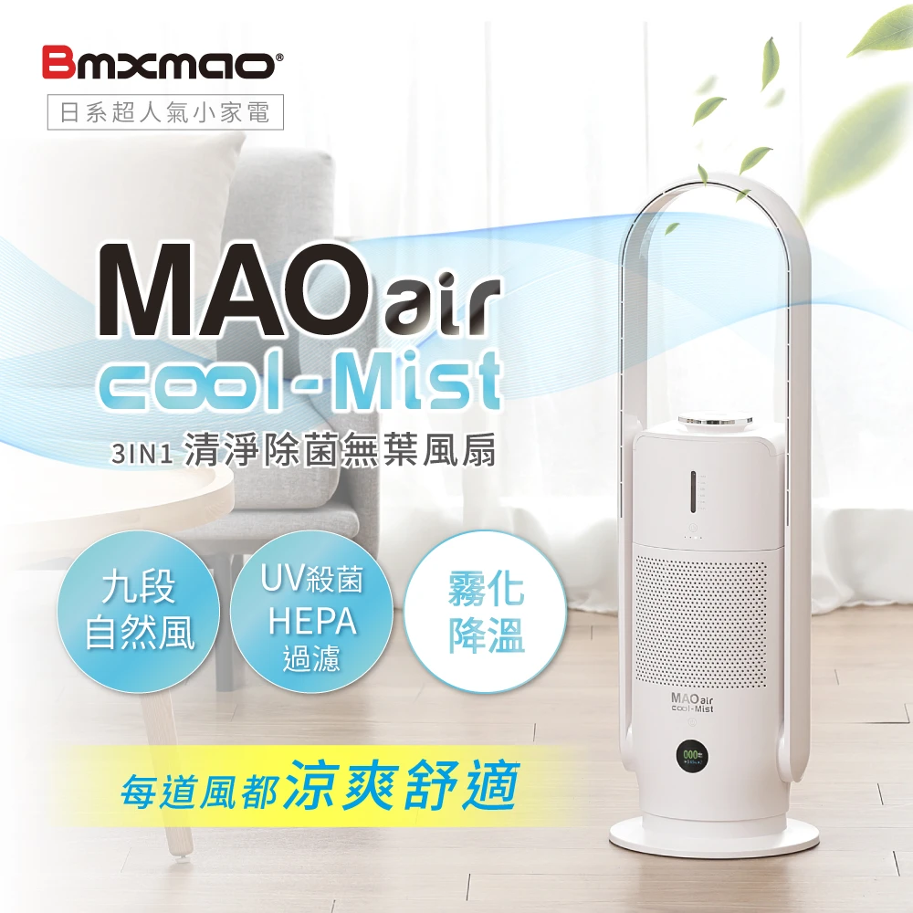 【Bmxmao】MAO air cool-Mist 3in1清淨除菌無葉風扇(無葉風扇/輔助冷房/UV殺菌/空氣清淨RV-4002)【Bmxmao】MAO air cool-Mist 3in1清淨除菌無葉風扇(無葉風扇/輔助冷房/UV殺菌/空氣清淨RV-4002)