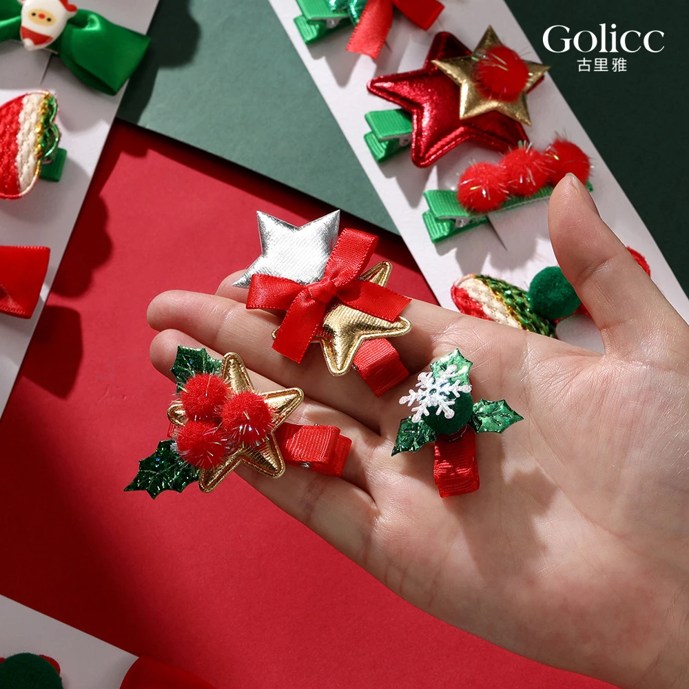 Golicc 聖誕造型小髮夾 一組5入(雙十 萬聖節 生日 髮飾 頭飾 鯊魚夾 抓夾 禮物)