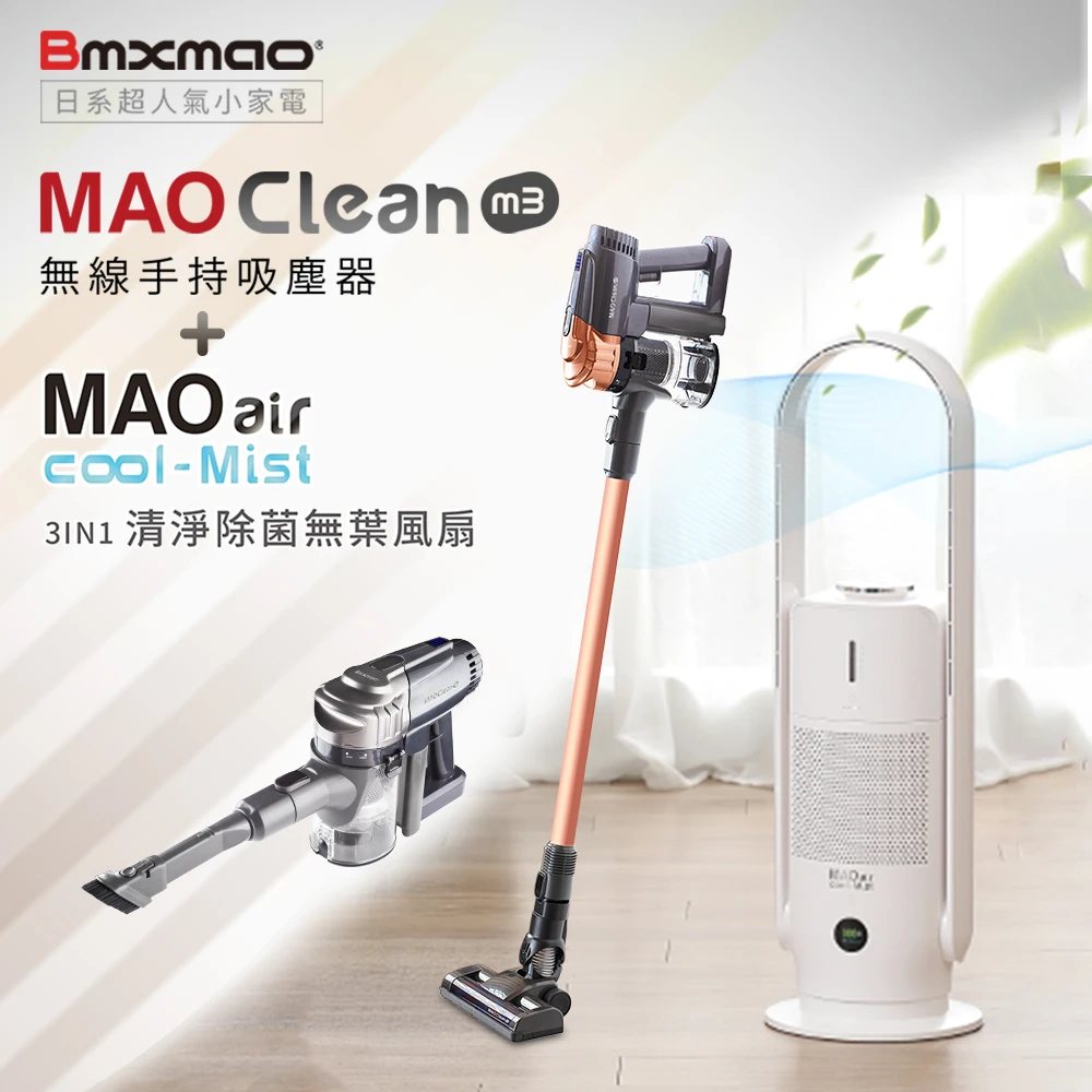 Bmxmao MAO Clean M3 16kPa超強吸力 無線手持吸塵器 +MAO air cool-Mist 3in1清淨除菌無葉風扇
