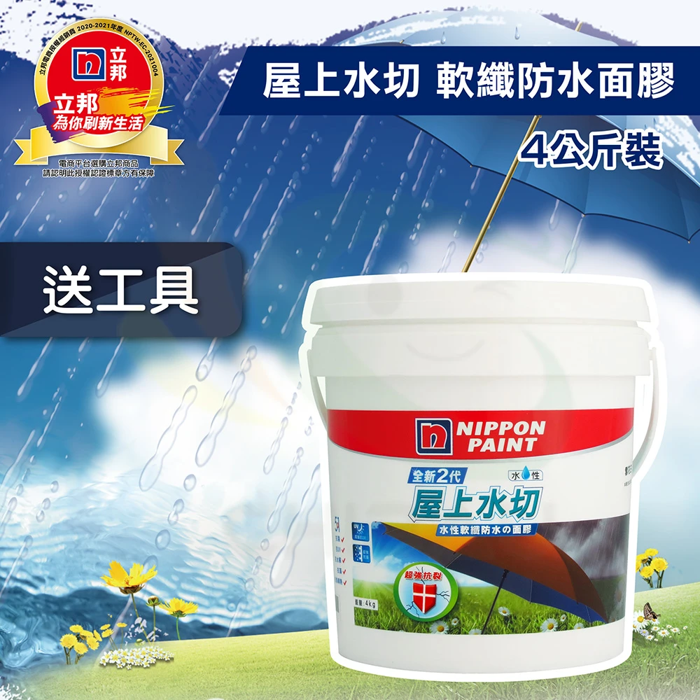 【立邦】全新2代5合1水性軟纖防水面膠 屋上水切(4公斤裝)(屋頂防水漆)【立邦】全新2代5合1水性軟纖防水面膠 屋上水切(4公斤裝)(屋頂防水漆)
