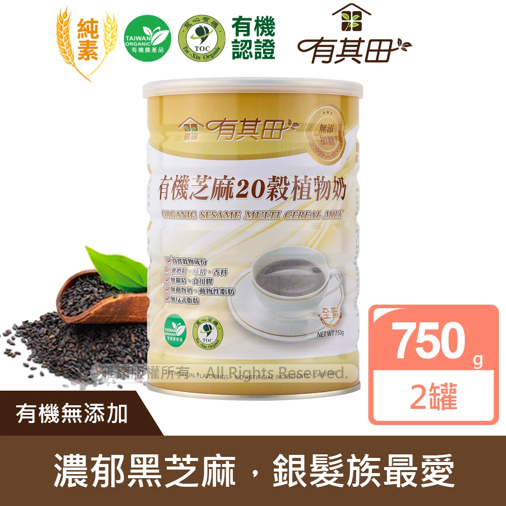 有其田 有機黑芝麻20穀植物奶750g/罐x2罐(無添加糖/芝麻粉/多穀奶/黑芝麻)