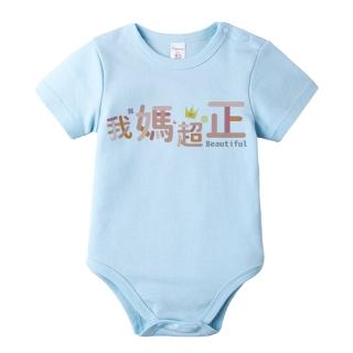【Baby童衣】任選 獨家趣味文字印花純棉短袖包屁衣-藍色 66219(我媽超正)