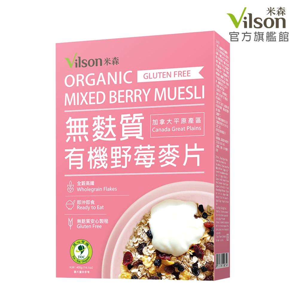 Vilson米森 有機無麩質野莓麥片(400gx1盒)