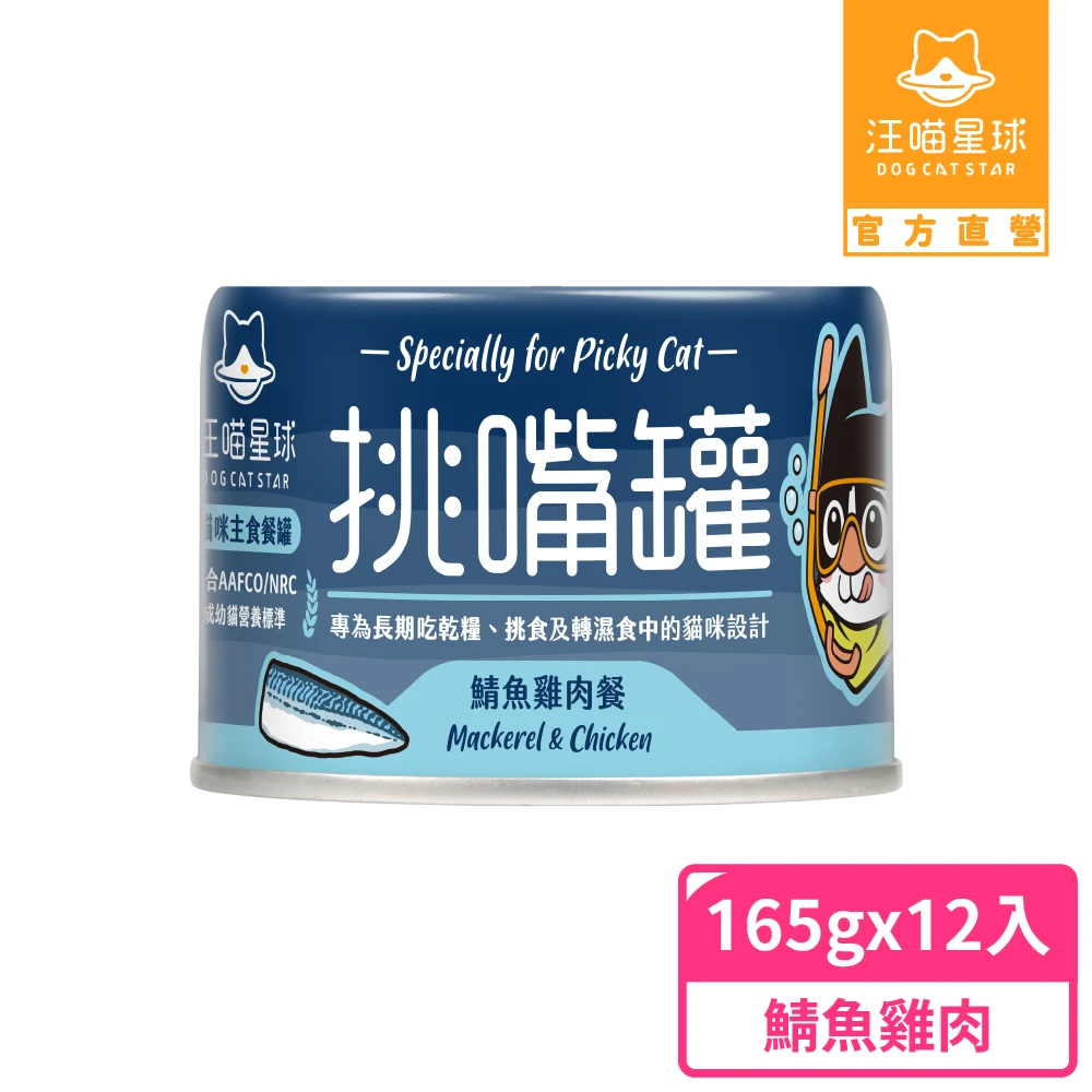 汪喵星球 挑嘴貓鮮魚無膠主食罐165g*12入(貓主食罐 全齡貓)