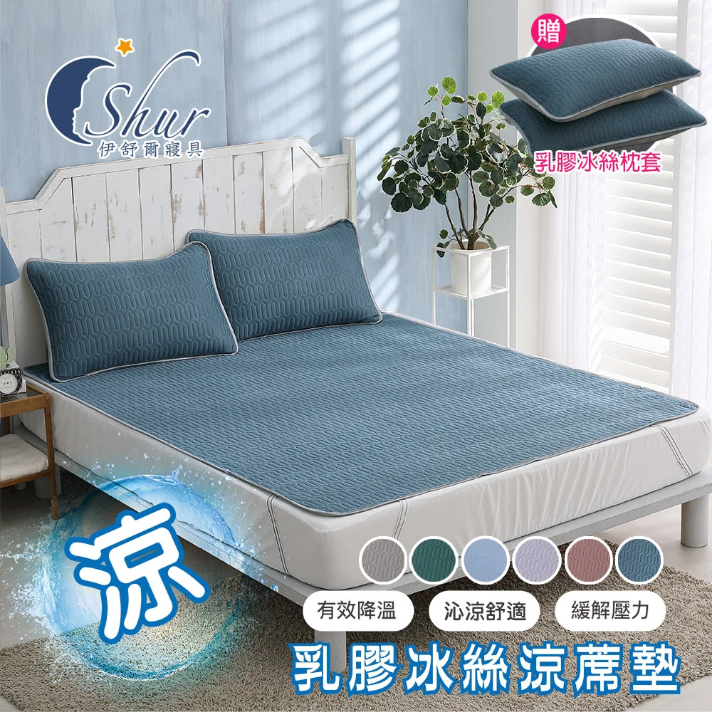 ISHUR 伊舒爾 乳膠冰絲涼蓆墊 贈同款枕頭套(單人 雙人 加大 均一價 涼感墊 野餐墊 居家必備 速達)