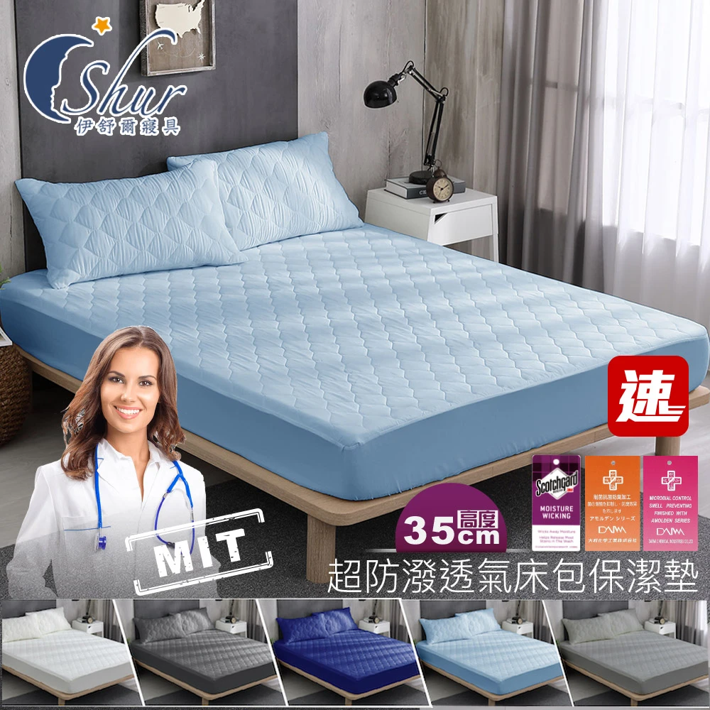ISHUR 伊舒爾 3M防潑水技術床包保潔墊 台灣製造 鋪棉加厚 日本抗菌(單人/雙人/加大/特大 均一價/速達)