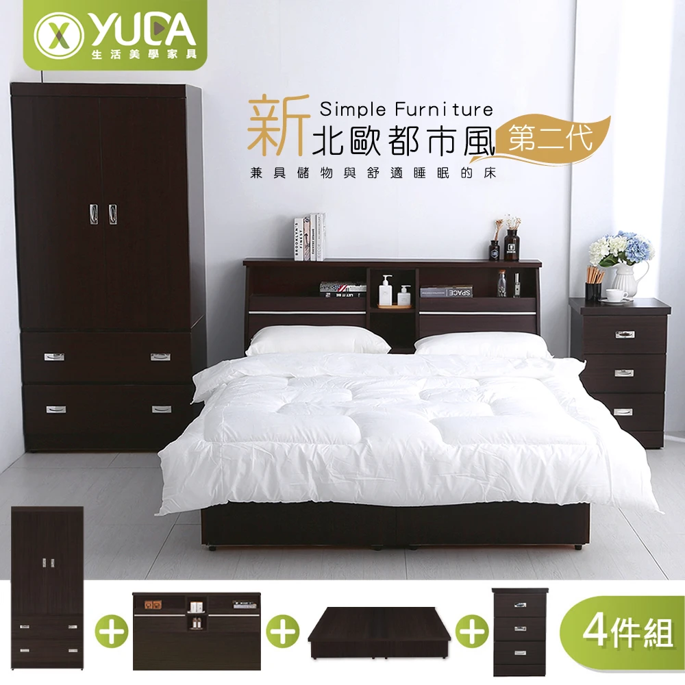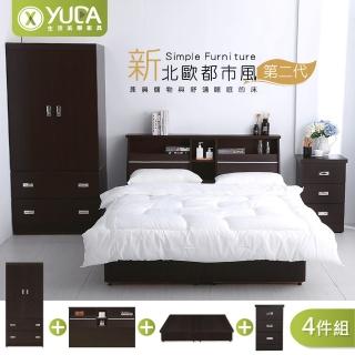 YUDA 生活美學 北歐都市風4件組 6抽屜床底+床頭箱+床邊櫃+衣櫃 大 6尺床底組/床架組(抽屜型床組)