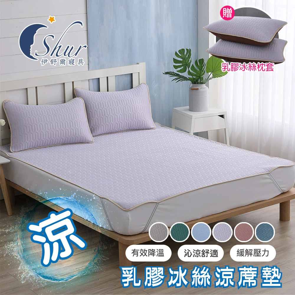 ISHUR 伊舒爾 買1送1 乳膠冰絲涼蓆墊 贈同款枕頭套(單人 雙人 加大 均一價 涼感墊 野餐墊 速達)