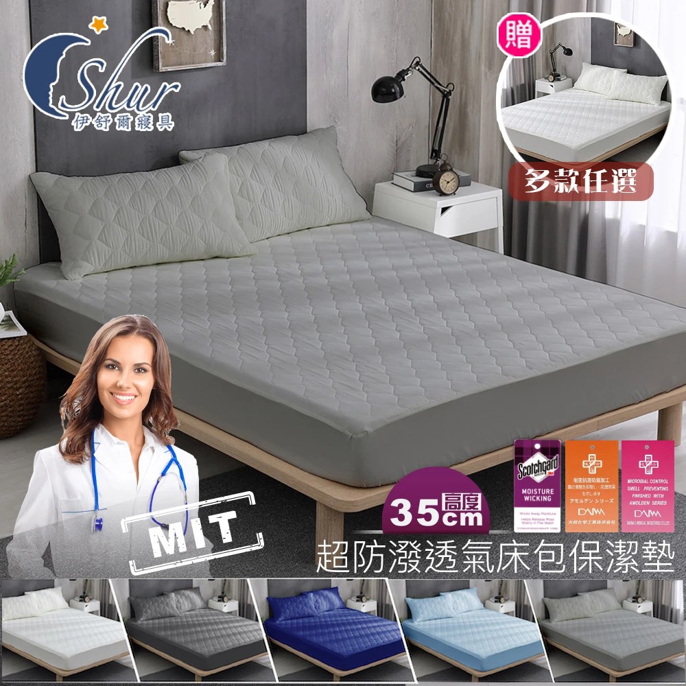 ISHUR 伊舒爾 買1送1 3M防潑水技術床包保潔墊 台灣製造 鋪棉加厚 日本抗菌(單人/雙人/加大/特大 均一價