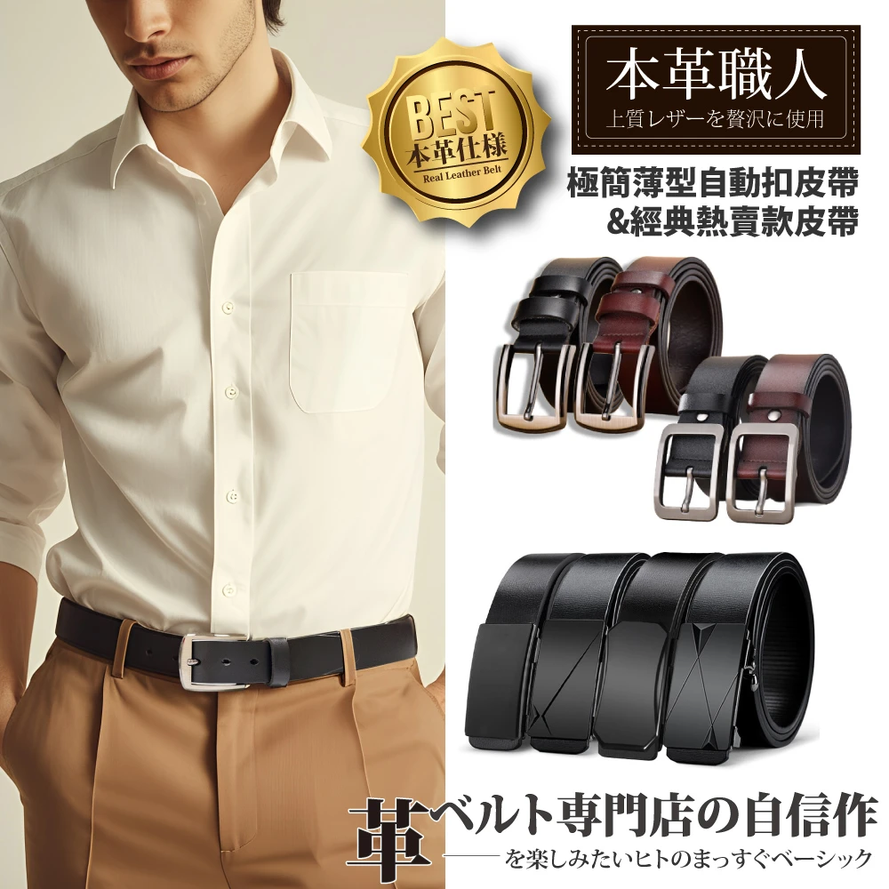 本革職人 真皮皮帶-極簡薄型自動扣&經典熱賣款皮帶-多款任選(父親節、情人節、禮物、送禮)