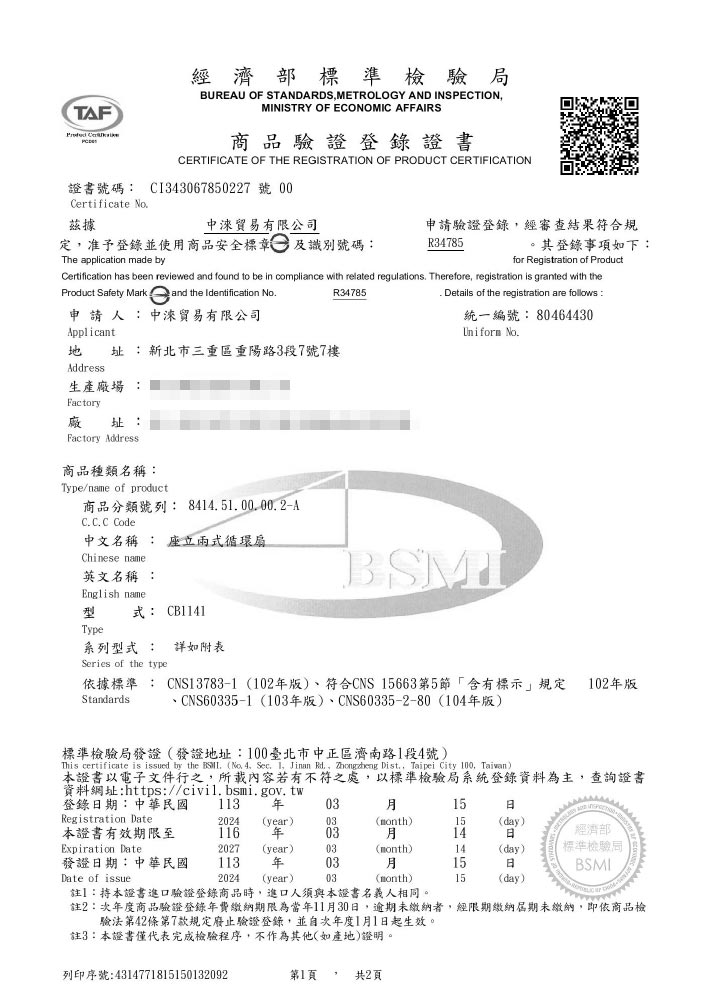 TAIGA 大河 全方位3D 擺頭送風 座立兩式空氣循環風扇/創風機(CB1141)