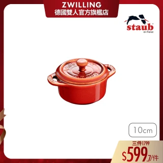 【法國Staub】圓形烤盅陶缽10cm-櫻桃紅/0.2L(德國雙人牌集團官方直營)