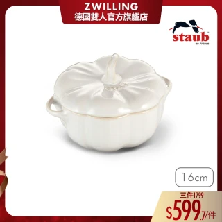 【法國Staub】南瓜造型烤盅陶缽16cm含把手-象牙白/0.47L(德國雙人牌集團官方直營)