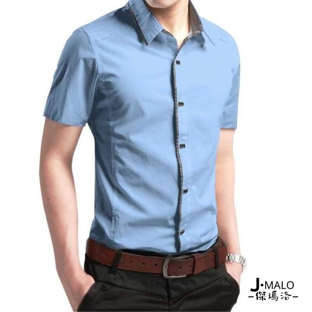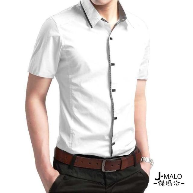 J.Malo韓版修身撞色短袖襯衫(韓版 修身 撞色 短袖襯衫 男裝)