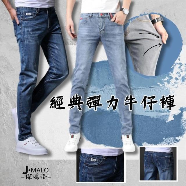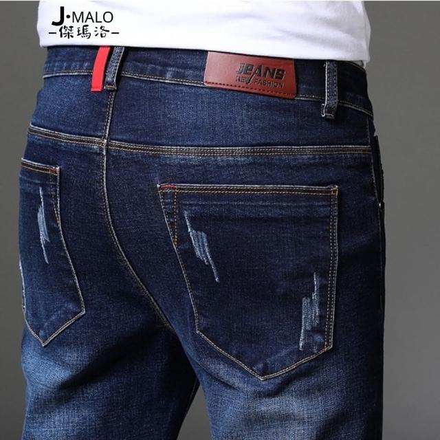 J.Malo直筒修身牛仔褲(直筒 彈力牛仔布 經典款 深藍色)