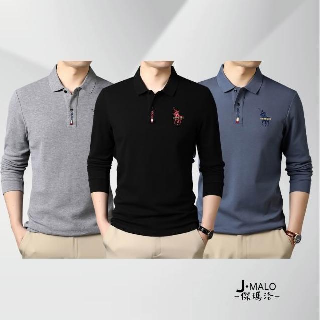 J.Malo冬季簡約風長袖polo衫(polo衫 長袖polo衫 男長袖polo衫 精緻刺繡 舒適棉質)