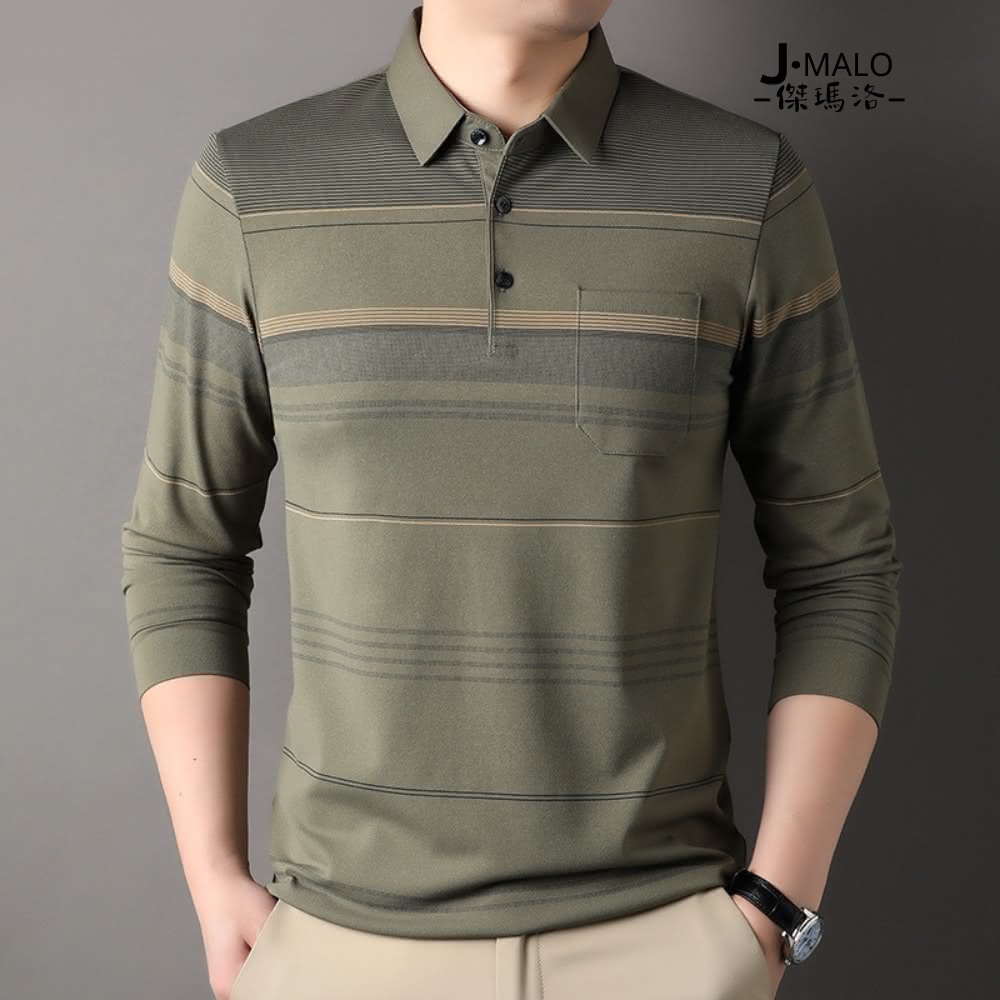 J.Malo冬季簡約風長袖 POLO 衫|精緻刺繡・舒適棉質・男款翻領上衣・台灣現貨・商務休閒男裝 POLO