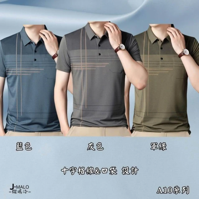J.Malo夏季冰絲簡約POLO衫(POLO衫 短袖 冰絲涼感面料 格紋設計 簡約紳士)