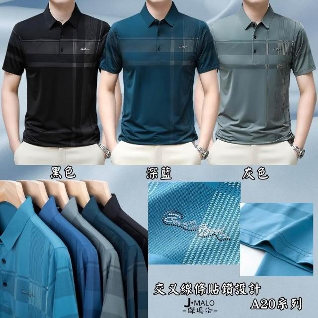 J.Malo夏季冰絲簡約POLO衫(POLO衫 短袖 冰絲涼感面料 格紋設計 簡約紳士)