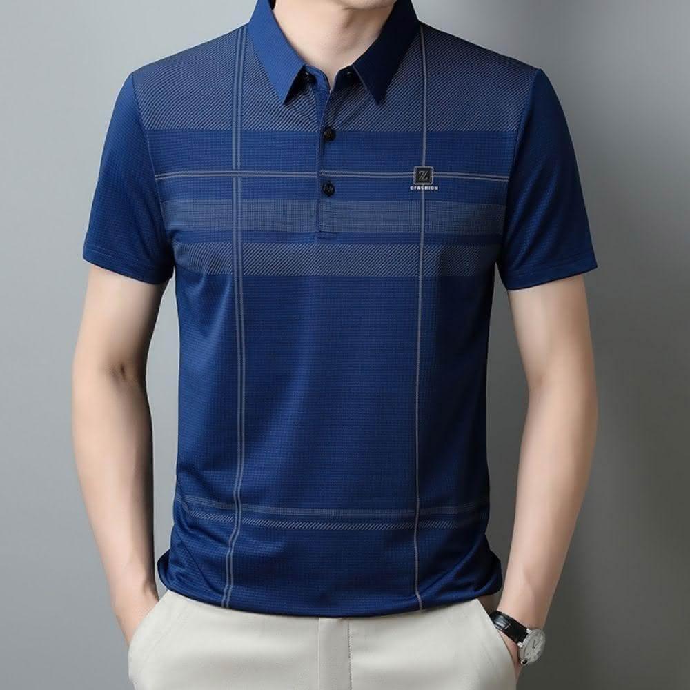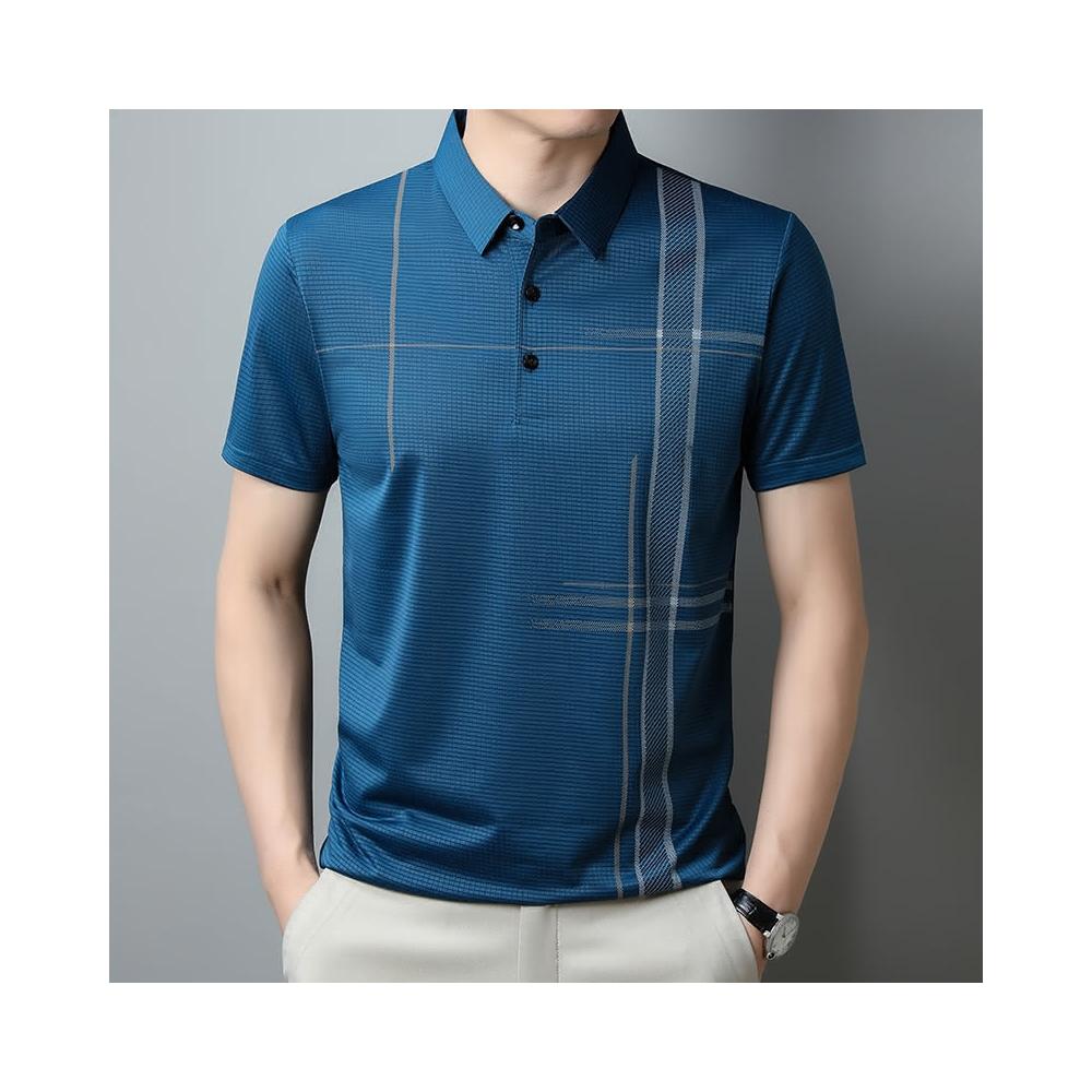 J.Malo夏季冰絲簡約POLO衫(POLO衫 短袖 冰絲涼感面料 格紋設計 簡約紳士)