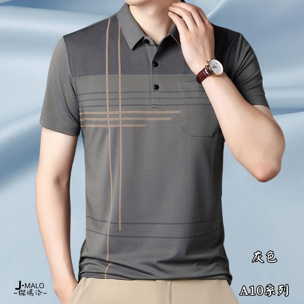 J.Malo夏季冰絲簡約POLO衫(POLO衫 短袖 冰絲涼感面料 格紋設計 簡約紳士)