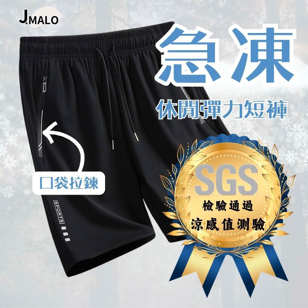 J.Malo口袋拉鍊休閒短褲 超彈力冰絲褲 冰絲短褲 五分褲 口袋拉鍊(超彈力冰絲褲 口袋拉鍊 休閒短褲)