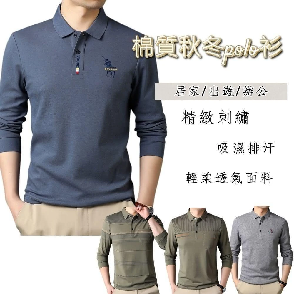 J.Malo秋冬棉質長袖 POLO 衫|商務休閒百搭・透氣排汗・不悶熱上衣・上班通勤長袖 POLO