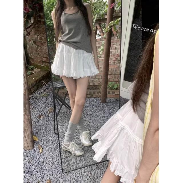 J.Malo女裝|高腰蕾絲邊澎澎短褲裙 澎澎褲裙 短褲裙 蕾絲短裙 蕾絲短褲裙 短裙