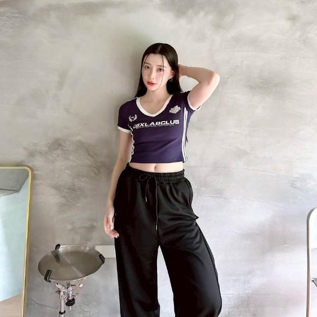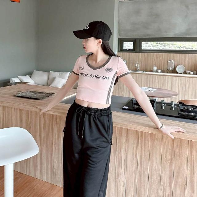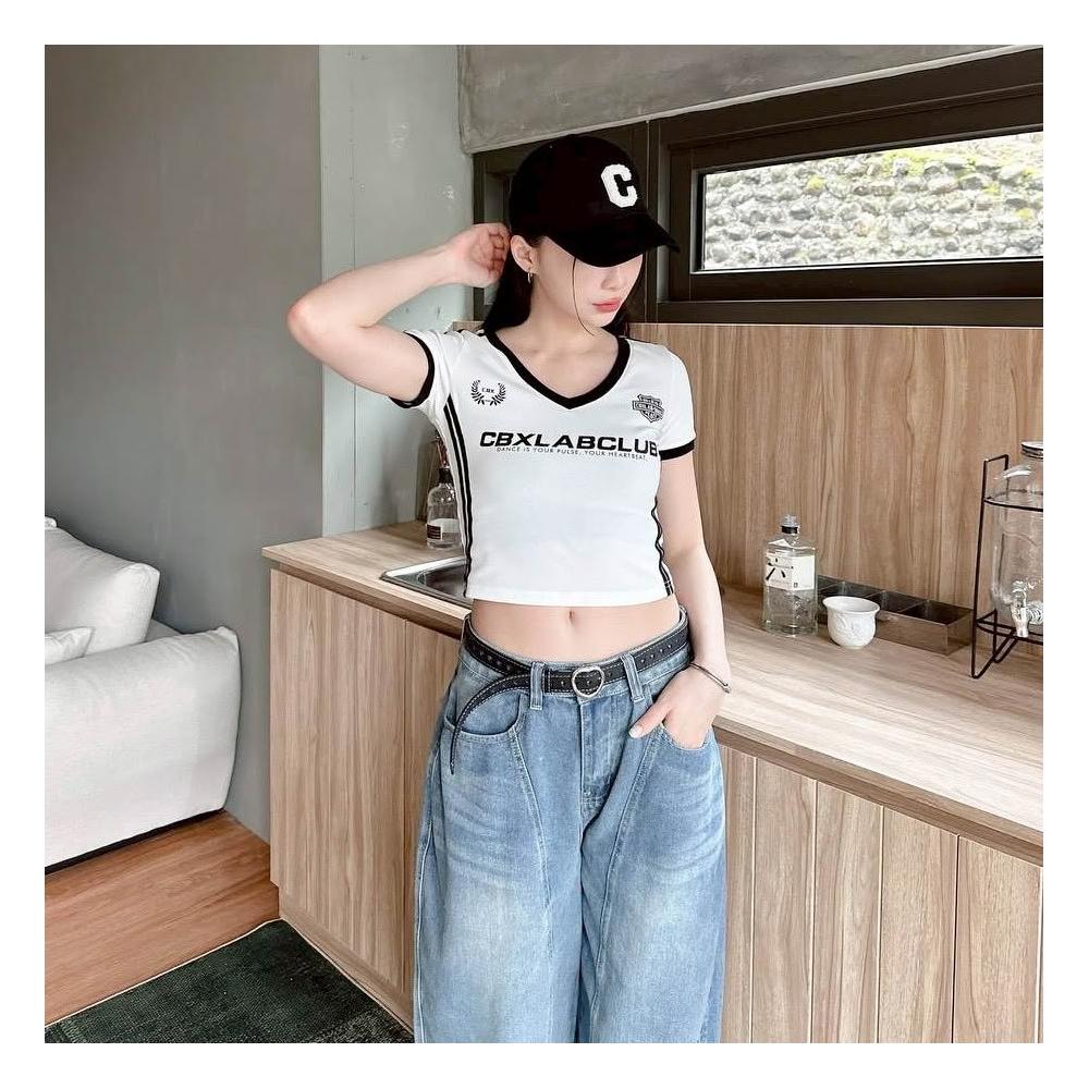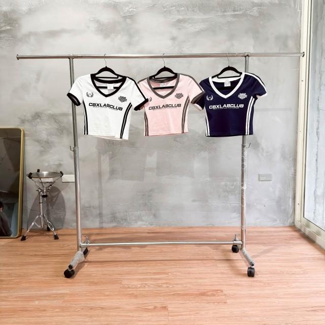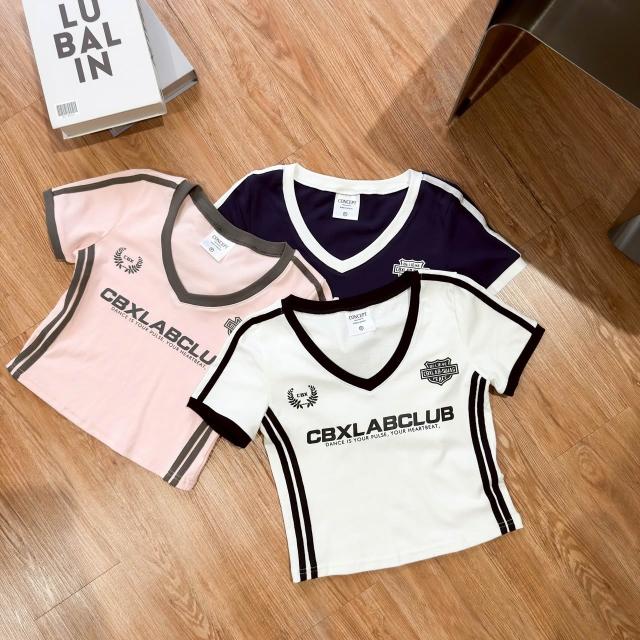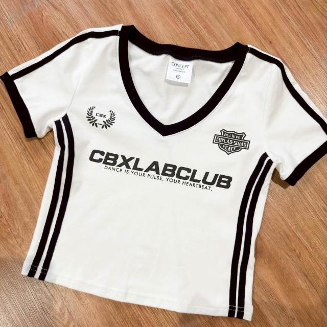 J.Malo韓版 CBXLABCLUB V領印花合身短版 女短袖 女裝 女短版球衣 正肩 白 粉 藍