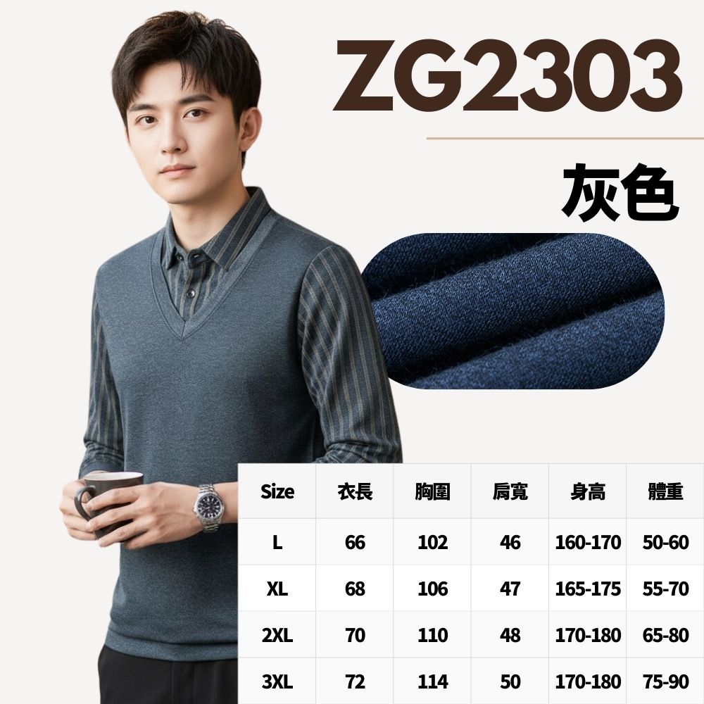 J.Malo冬季假兩件長袖 POLO 衫|簡約翻領設計・秋冬保暖上衣・台灣現貨・日常通勤 POLO 衫