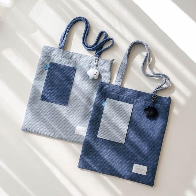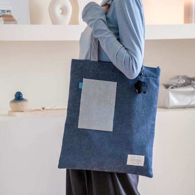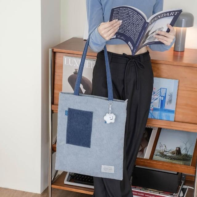 Square Studio 方坊燈芯絨 口袋托特包 帆布袋 撞色款 大容量可放A4文件 喜怒哀樂
