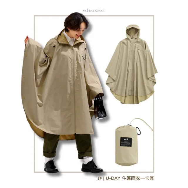 U-DAY 前開拉鍊式加長版斗篷雨衣 (共3色)